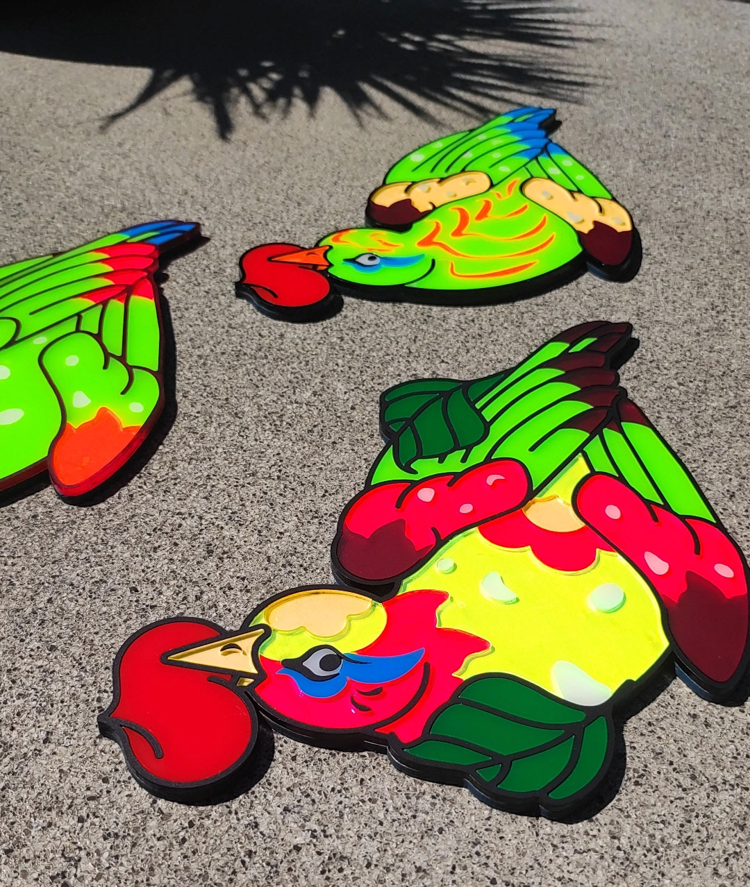 Tropical birds made out of acrylglas